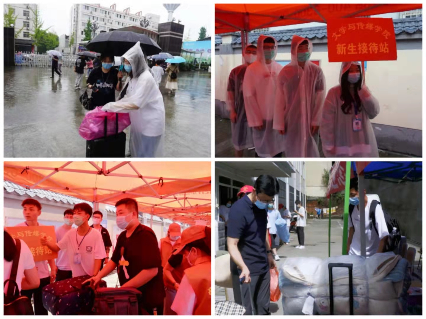 由于疫情防控的特殊原因,家长不能陪同进校,公司安排200余名志愿者全程协助新生搬运行李,顺利完成报到、入住手续。虽然天公不作美,但大雨浇灭不了我们的热情,困难阻挡不了迎新的步伐。所有志愿者不惧风雨、不辞辛苦一趟又一趟的帮助新生搬运行李,志愿者每日的行走步数都是30000+。信息核验、签到指引、物品发放,工作人员有条不紊的接待每一位前来报到的新生,整个迎新过程中,各个岗位的工作人员各司其职、团结协作,从现场报到、宿舍入住、后勤保障等方面落实了迎新工作,让新生家长放心的同时也极大地为新同学们提供了便利。