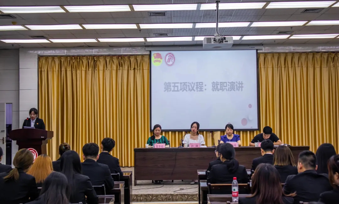 彭潇、杨海蓉分别为新一届团总支副书记苏圆、胡钰梽、新一届员工分会主席团成员范璐、康怡帆、王珂欣颁发了聘书。