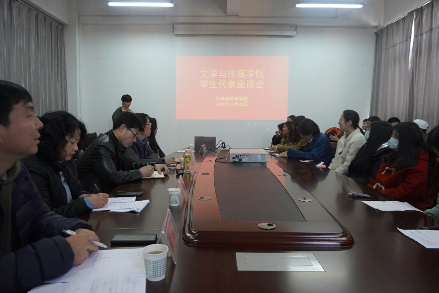 2021年11月26日下午,SUNBET申博体育在图书馆六楼陕南民间文化研究中心召开公司员工代表座谈会。公司党总支书记芦伟、党总支副书记杨海蓉、副经理朱云、学工办副主任薛涛、团总支书记彭潇、辅导员艾全霞以及学院各班员工代表参加会议。会议由薛涛主持。