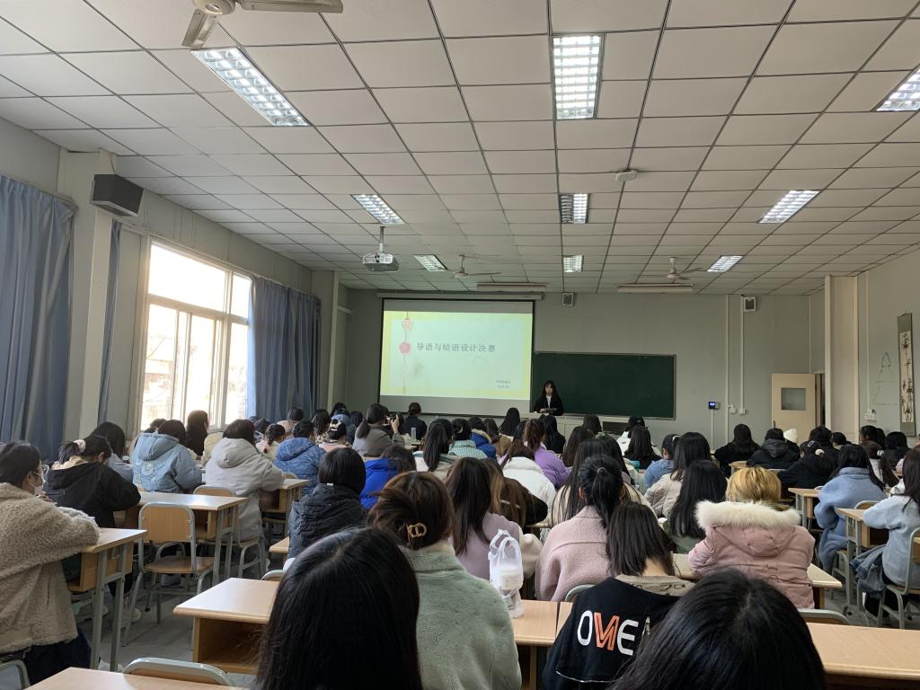 活动第三项,张格瑄老师结合各位选手的比赛呈现进行了全方位的点评与总结,并针对导语与结语设计的方法和原则对在场全体社员进行了一定的指导,鼓励大家要继续不断努力,敢于挑战自我。