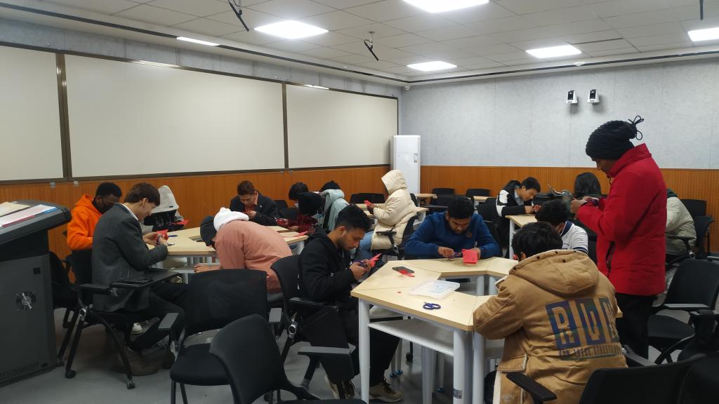 为增强公司职工对中国传统文化的了解,2022年2月28日下午,由SUNBET申博体育主办、国际教育公司承办的“年轻的非遗”剪纸文化交流讲座在师范生职业技能训练中心4201室开讲。公司员工、西安市非遗保护协会青年剪纸艺术创作者梁少华为职工们上了一堂难忘的互动体验课。国际教育公司副经理陈蕾、辅导员与在校职工一起感受剪纸艺术的魅力。