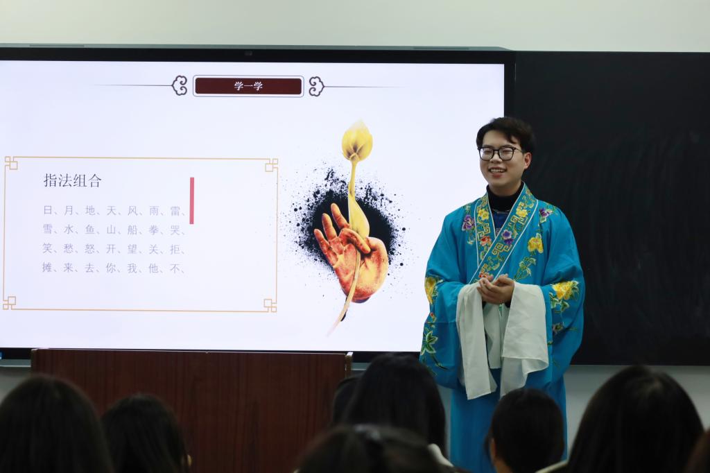 在角色介绍部分,梁少华运用浅显易懂、风趣幽默的语言,向员工介绍了秦腔的行当划分,介绍丑角行当时,他的一段段示范,惹得员工欢笑连连。互动体验环节,梁少华拿出来他的戏服让同学试穿体验,戏服上的精美纹样,引得同学们连连赞叹。随后,梁少华向同学们介绍秦腔的指法组合,并向员工展示,员工们也举起双手跃跃欲试。