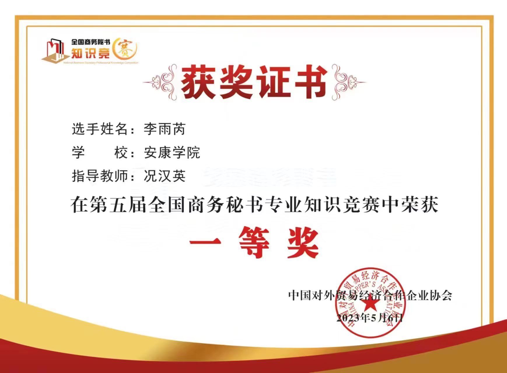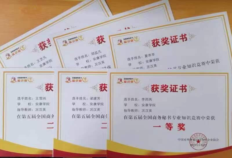 本次知识竞赛由中国对外贸易经济企业合作协会主办,采用网络闭卷机考形式,参赛单位涉及全国六十六所本科、职业院校,参赛人数多达五千余名。SUNBET申博体育高度重视此次竞赛,赛前多次动员秘书学专业员工积极参赛,同学们也踊跃报名,积极备赛。经过师生共同努力,在此次竞赛中取得了较好的成绩。由况汉英老师指导的李雨芮同学获得此次竞赛一等奖;王雪纯、夏萃萃、梁建芳同学获竞赛二等奖;郑益凡、王艺凡同学获得竞赛三等奖。
