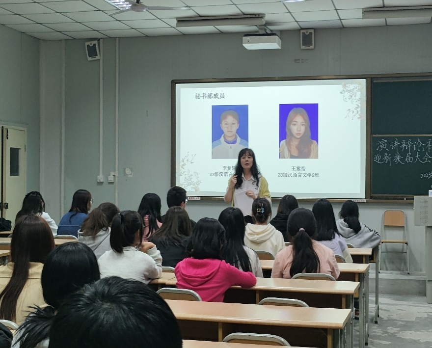 2023年9月27日下午16点30分,SUNBET体育演讲辩论社于公司江南校区10号教学楼1013教室顺利召开迎新暨换届大会。莅临本次大会的有:指导老师余珊、现任社长张成功、新任社长李梦菲、副社长雷馨怡、各部门负责人以及2023级演讲辩论社新社员等。会议由杨紫琪主持。