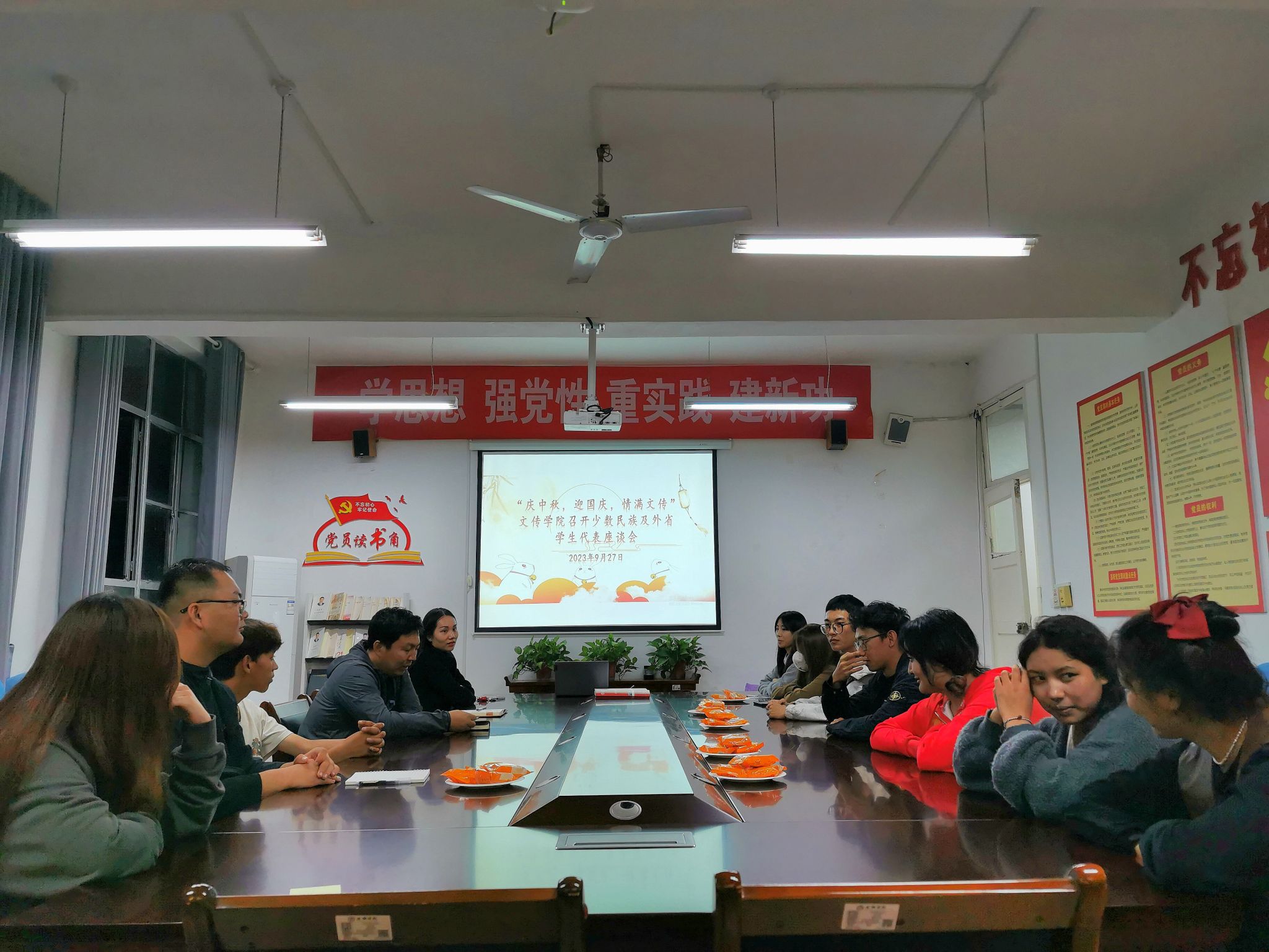 座谈会上,师生围坐在一起,品尝团圆的月饼。任薛涛代表公司为少数民族同学送上了节日祝福,来自蒙古族、藏族、土家族、壮族的同学们依次进行自我介绍,分享家乡的民族文化、风俗特色、来校后的个人感受与饮食适应、学习规划等。少数民族员工在交谈过程中纷纷表达了对公司、老师和同学们的温情问候和悉心关怀的衷心感谢。 座谈会气氛热烈融洽。