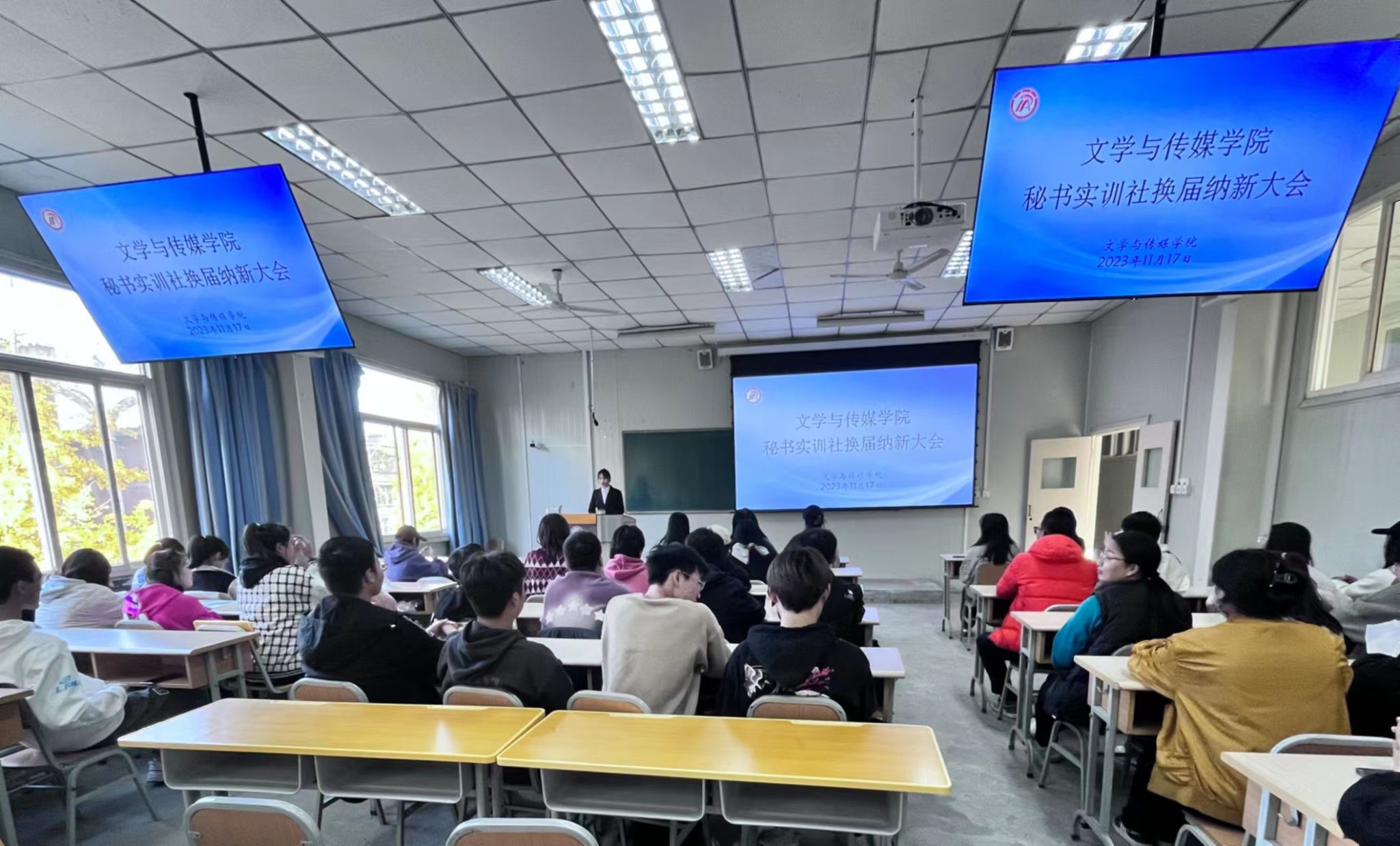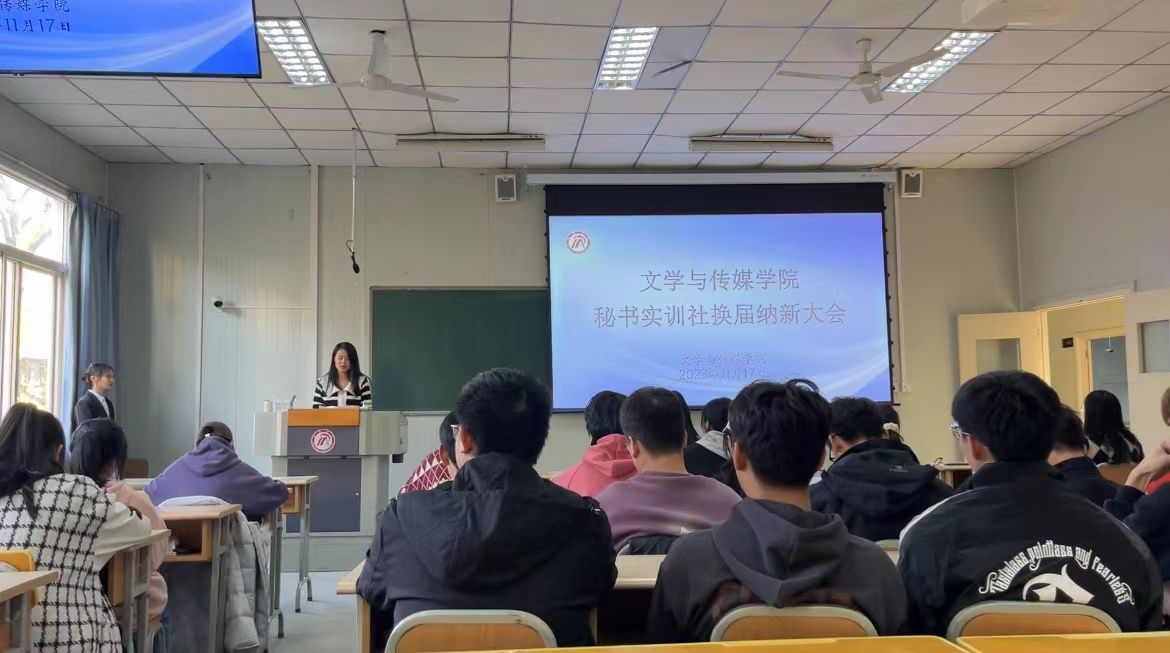 为加强公司秘书学专业员工实训实践,促进学科交流,搭建更宽阔的秘书实务平台,2023年11月17日下午4点30分,SUNBET申博体育秘书实训社在十号楼1028教室顺利举办了换届纳新大会,指导老师况汉英应邀出席本次会议,秘书学2021级、2022级以及2023级全体同学参会,秘书学2021级陈玉静主持。
