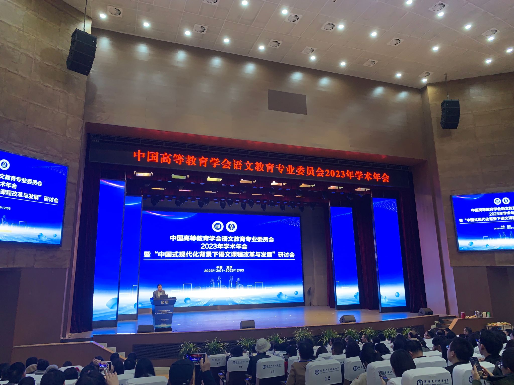 12月2日上午,中国高等教育学会语文教育专业委员会2023年学术年会在西南大学附属中学顺利举行。西南大学党委副书记黄杰、高等教育学会语文教育专业委员会理事长郑国民教授、西南大学教师教育公司经理陈恩伦教授,华东师范大学吴刚平教授、上海师范大学王荣生教授、人民教育出版社副总编辑朱于国副总编辑、教育部课程教材研究所主任王艳芳主任、委员会秘书长李煜晖教授、扬州大学徐林祥教授、希沃副总裁魏振水、委员会副理事长于源溟、张良田、宋祥教授,《中学语文教学》主编张蕾,《中学语文教学参考》主编张莉莉,《课程教材教法》曹現主任,以及语文教育界的专家、学者、教师等参与会议。大会开幕式由委员会监事、西南大学荣维东教授主持。