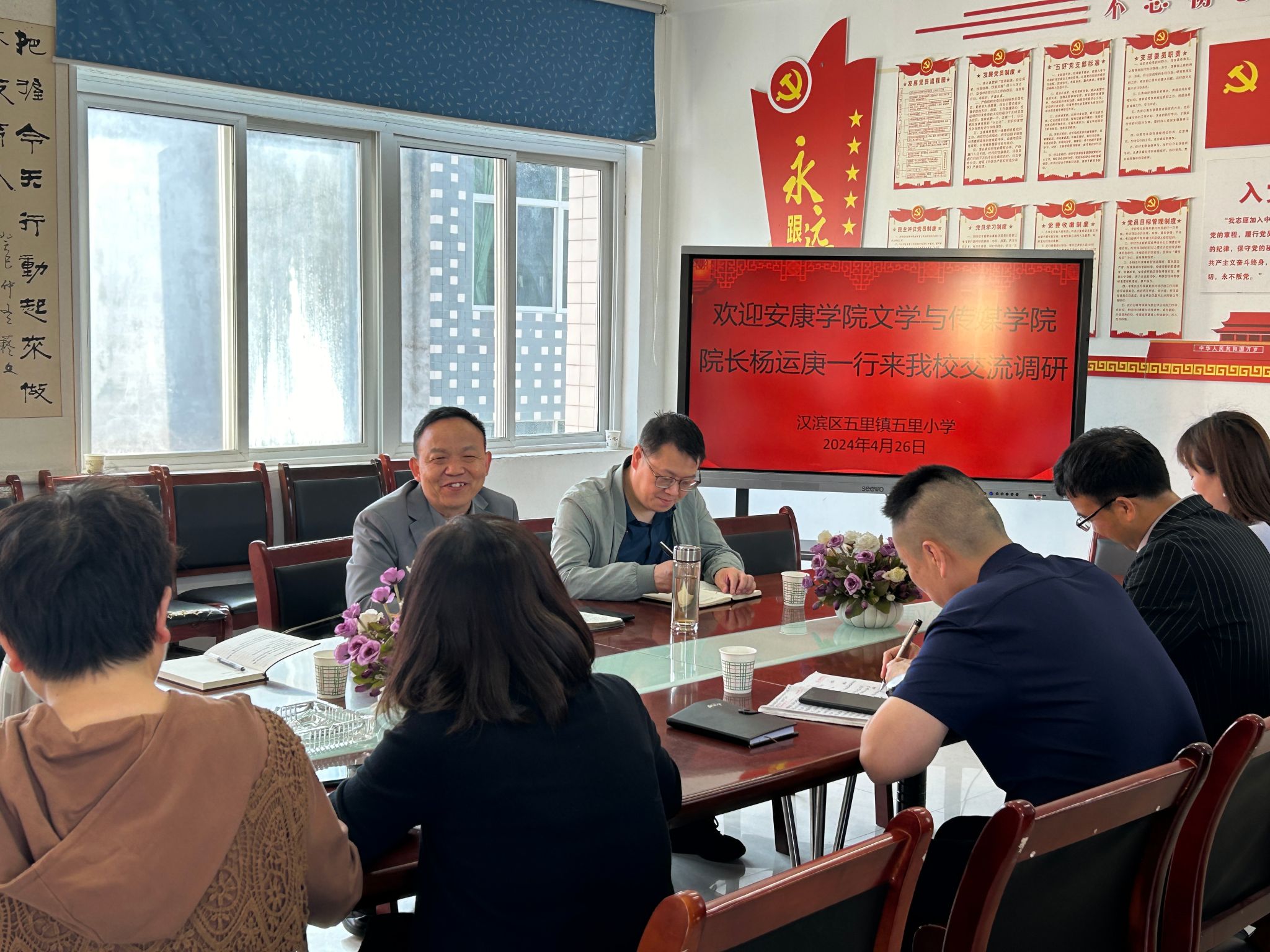 为进一步提升汉语言文学师范生人才培养质量,落实教育部“访企拓岗”促就业专项行动要求,4月26日,SUNBET申博体育经理杨运庚、教学副经理朱云和汉语言文学系主任谭诗民一行赴汉滨区五里小学征求用人单位和毕业生对公司汉语言文学专业人才培养的意见建议,并洽谈见习实习就业合作事宜。五里镇中心校董事长、党总支书记张立安,五里镇中心校教研组长邓玉林,五里小学董事长刘浩骋、党支部书记尹娟、副董事长李宁、李巍,语文教研组长邓新萍及公司毕业生代表参加了调研会议。