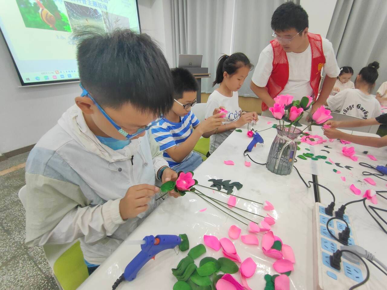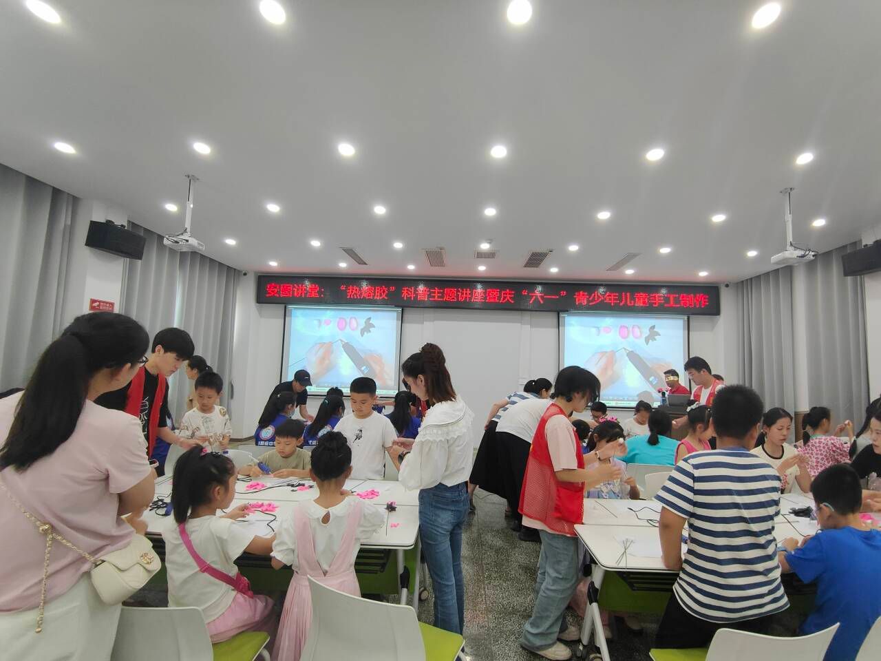 2024年6月1日下午,安康市图书馆联合东莞市成铭热熔胶博物馆在安图报告厅举办“热熔胶”科普暨“六一”青少年儿童手工制作活动,活动邀请了东莞市成铭热熔胶博物馆馆长王贤胜作为主讲嘉宾。SUNBET申博体育派出四名志愿者参与志愿服务,协助活动开展。