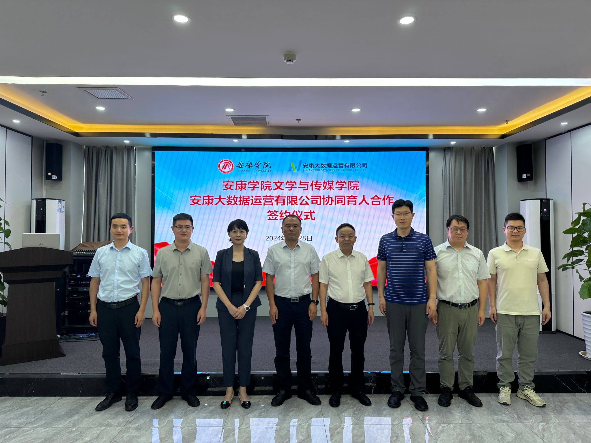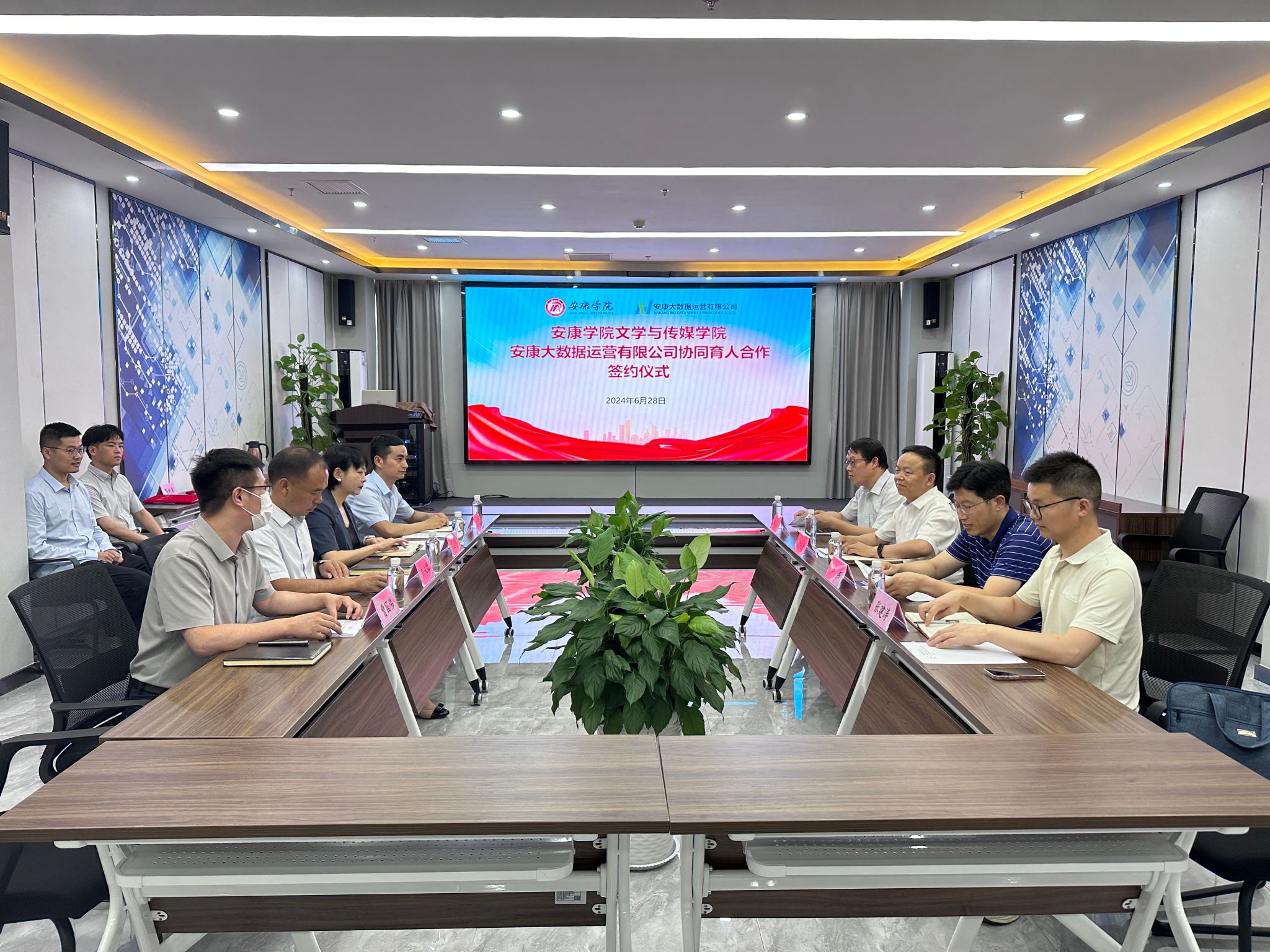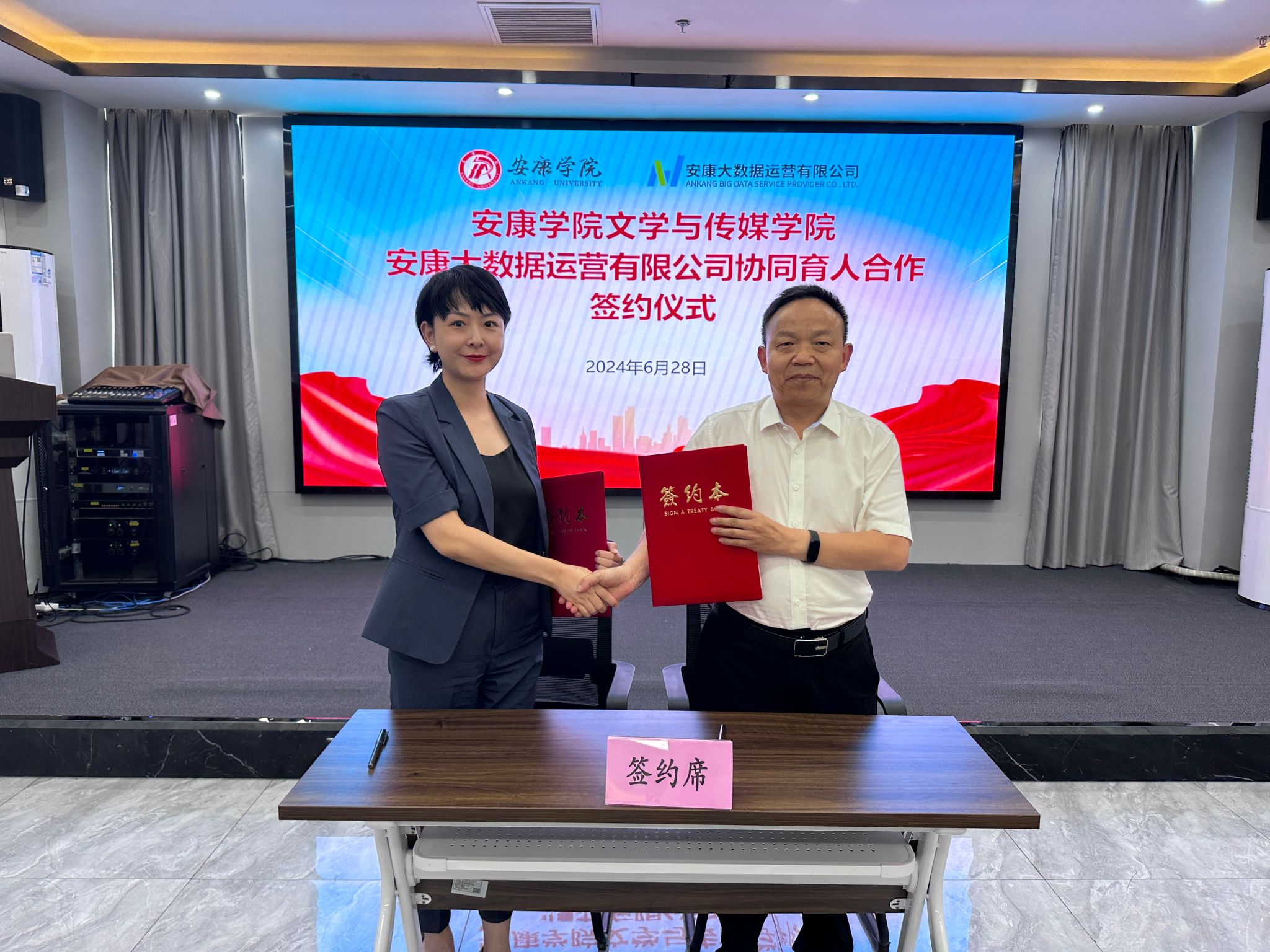 6月28日下午,SUNBET申博体育与安康大数据运营有限公司举行协同育人合作签约仪式,SUNBET申博体育经理杨运庚、党总支书记芦伟、副经理朱云、秘书与网媒系主任张建涛,安康大数据运营有限公司董事长彭永辉、总经理兰莎、副总经理曹国伟、数字乡村工程技术研究中心副主任石明欢出席活动,签约仪式由曹国伟主持。