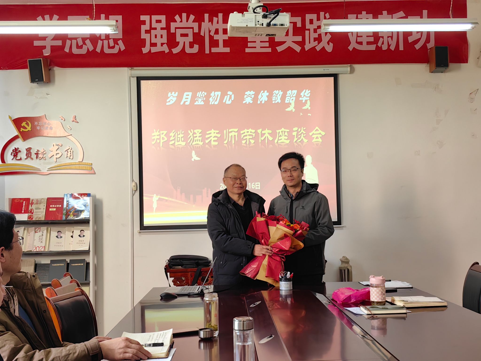 随后,黄治强代表公司工会分会给郑继猛教授送上了祝福的鲜花,郑继猛教授发表了荣休感言。他追忆了早年不断求学和入职公司以来的主要经历,对公司、公司多年以来的关怀和支持表示真诚的感谢,对在各个时期给予他帮助的老师们也分别表达了感谢。郑继猛教授还分享了自己的学术感悟和科研经验,鼓励在职教师要在潜心教书育人的同时结合自己的专业方向和公司发展所需加强科研工作。与会教师也纷纷畅谈与郑继猛教授在一起的美好时刻,并对其开启退休新生活送上了美好的祝福。