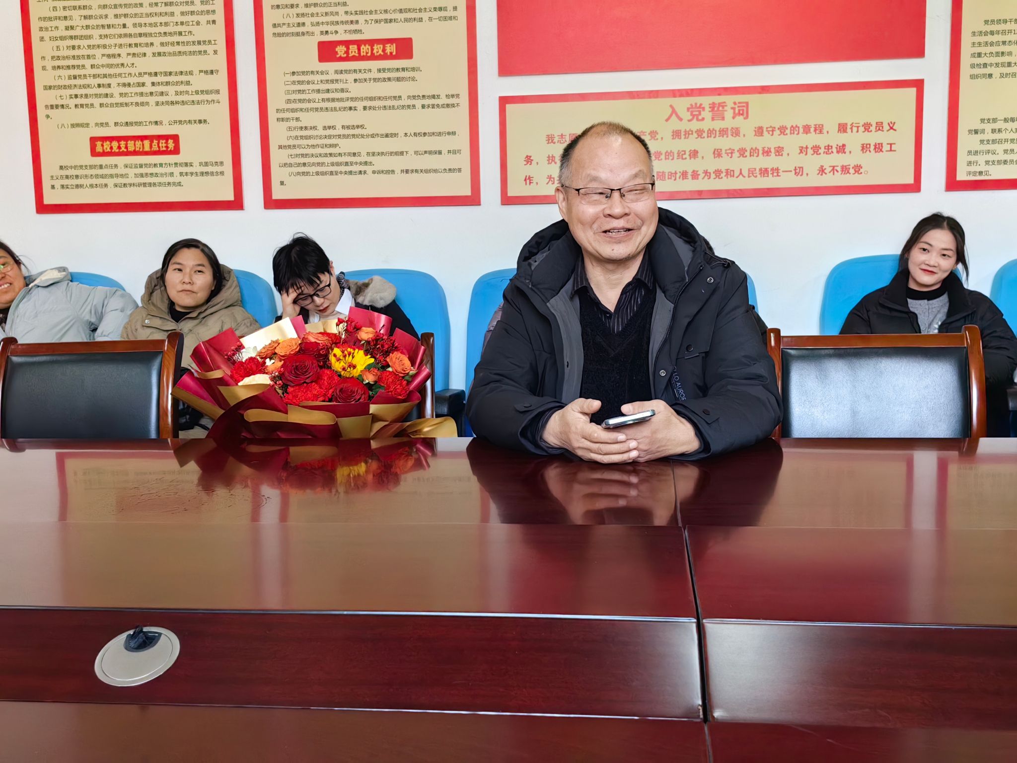 会议开始,全体教师集体观看了公司为郑继猛教授制作的荣休视频,视频简要回顾了郑继猛教授入职公司以年来的主要经历,再现了郑继猛教授教书育人、潜心治学、服务地方、敬业奉献的光辉时刻,展示了他主要的教科研成果,并送了师生们的真挚祝福。