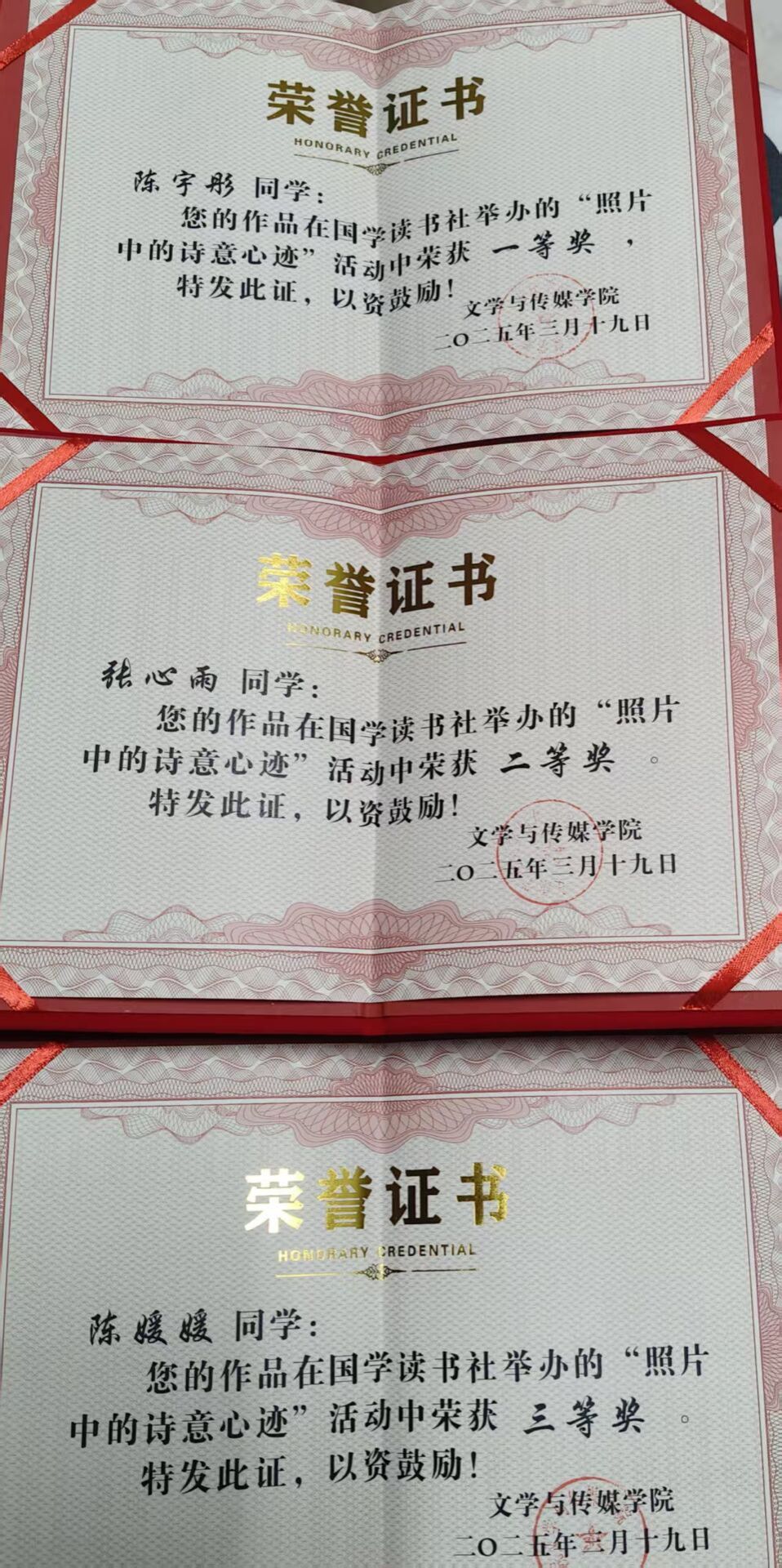 2025年3月20日,文传公司国学读书社举办的“照片中的诗意心迹”活动在春日的暖阳中圆满结束。此次活动主题为:春日诗笺,照片中的诗意心迹。活动要求参赛选手用照片捕捉春天的足迹,在图片上,选择与图片契合的诗歌分享心迹,丰富作品的内涵。每一份作品都是一次心灵的对话,都是对大自然对诗歌的热爱。