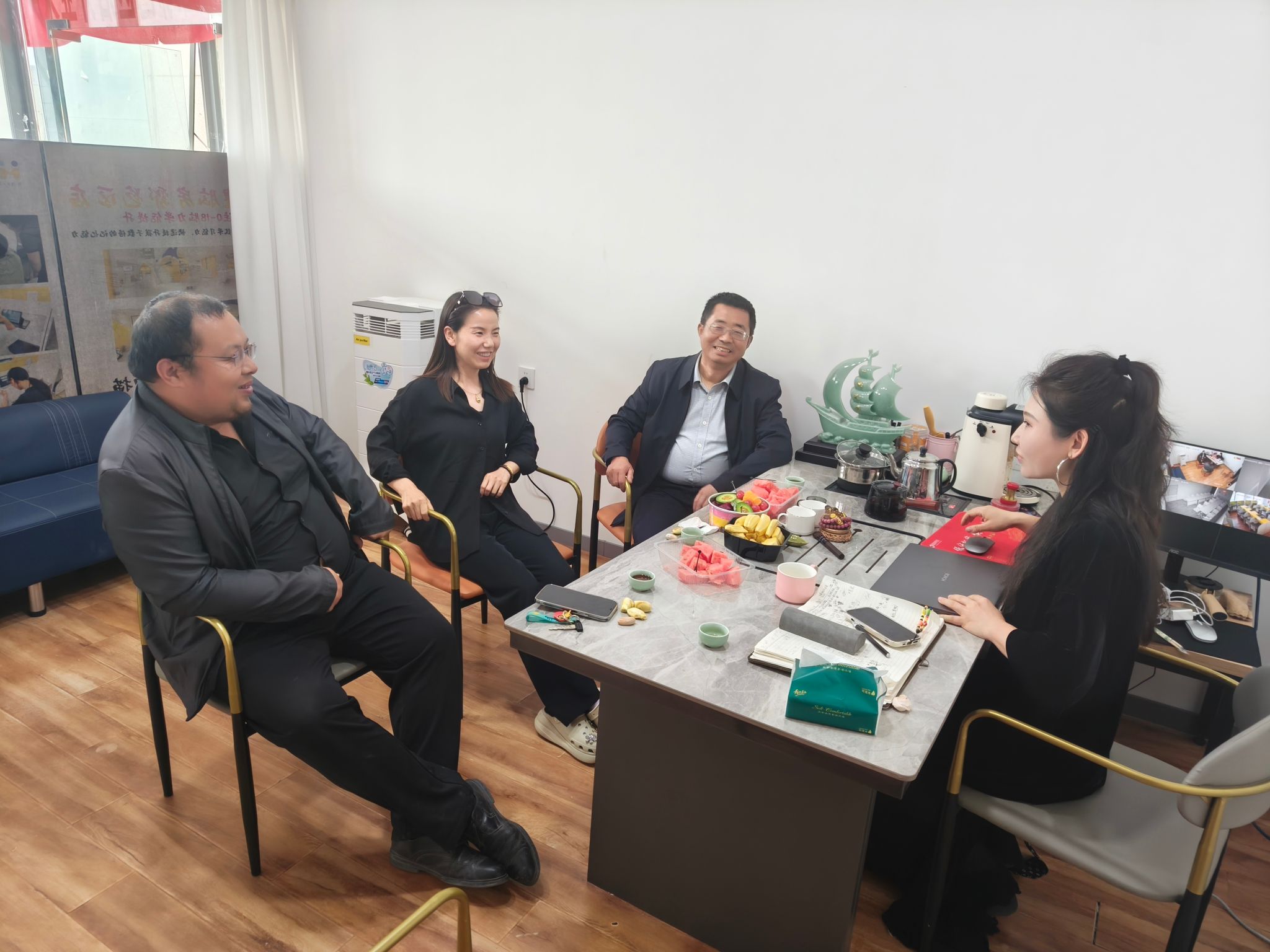 4月7日,应员工付磊邀请,邹棠华来到鄠邑区石井镇,参观了红军过境陈列馆、位于土门村的民宿产业以及周边环境,对于如何利用红色资源打造红色教育基地,拓展文旅项目,吸纳老员工就业等提出了建设性意见。在鄠邑,走访员工周琳和刘昱伶,了解悦脑教育鄠邑加盟创办人周琳的办学规模和今后的发展规划,介绍公司毕业生情况,达成了校企合作和毕业生就业多个意向。