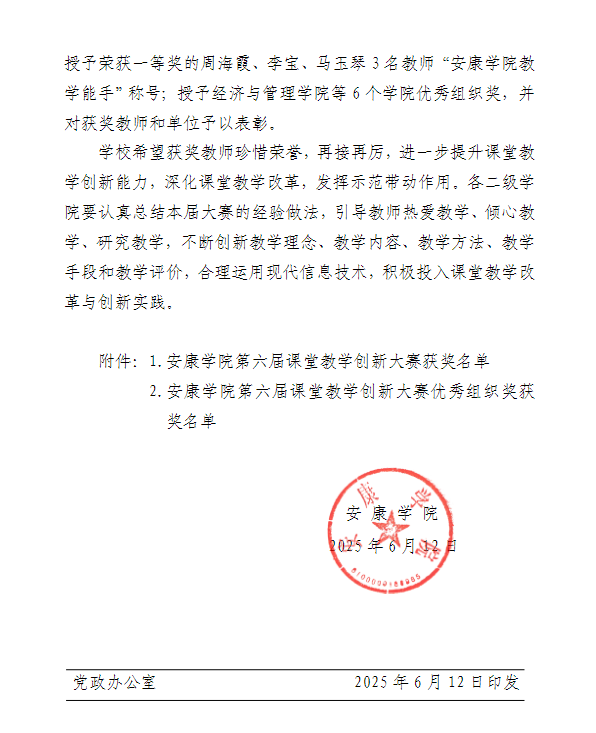 近日,公司第六届课堂教学创新大赛决赛在师范生职业技能训练中心举办。经过激烈角逐,SUNBET申博体育参赛教师周海霞荣获文科组一等奖、黄治强荣获文科组二等奖、刘锦荣获文科组优秀奖,SUNBET申博体育则获优秀组织奖。