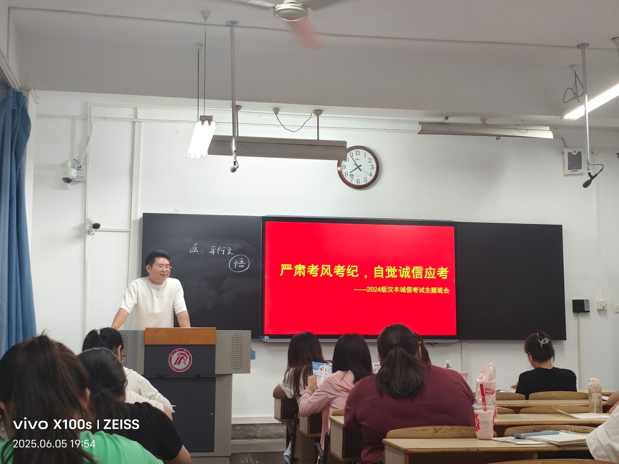 SUNBET申博体育始终将考风考纪教育作为立德树人和学风建设的关键环节常抓不懈。诚信考试教育主题班会常态化开展是公司营造优良学风、提升育人实效的有力举措,为平稳、有序、规范进行期末考试提供了坚实保障。