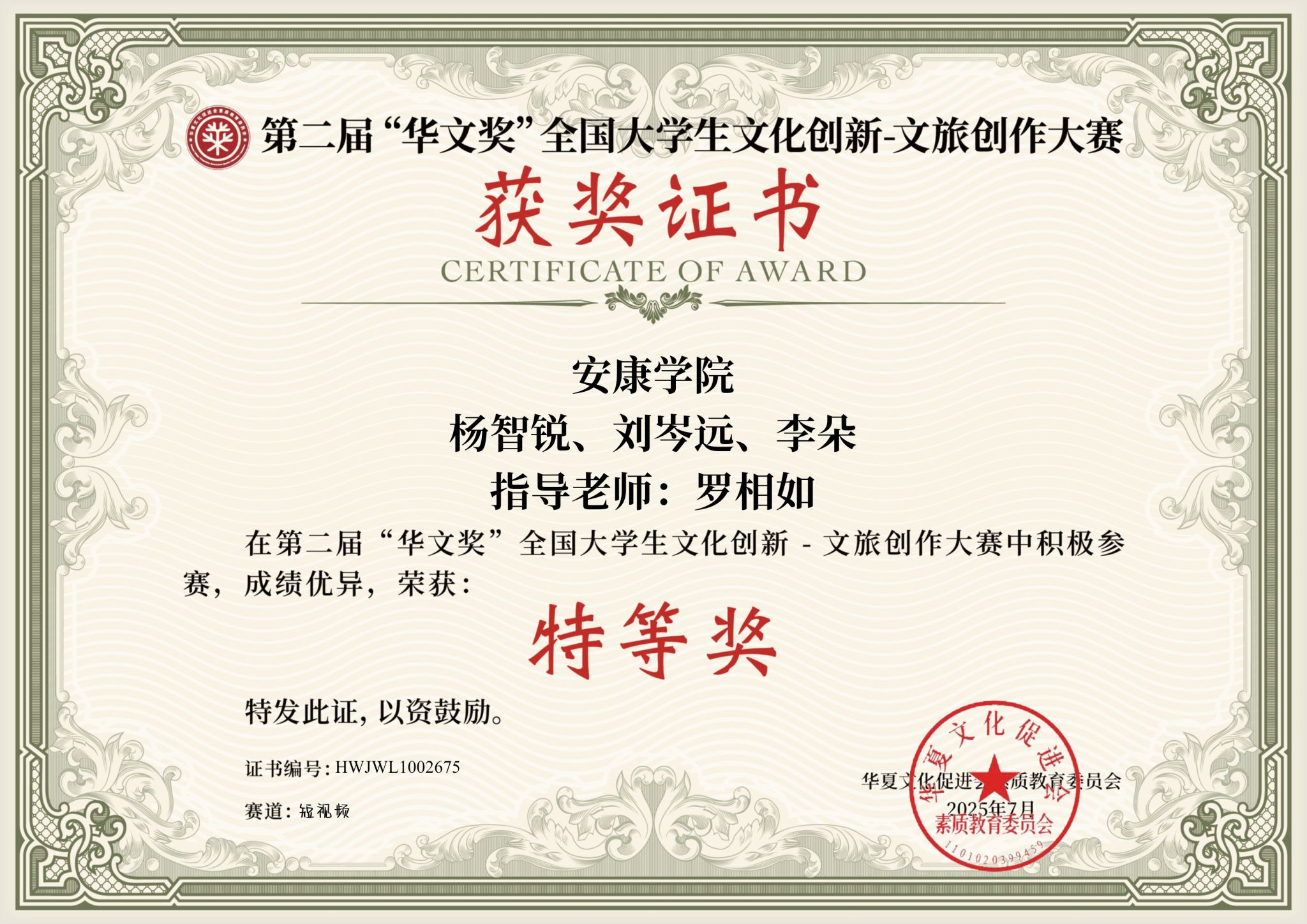 《汉水遗韵》由公司教师罗相如指导,网络与新媒体专业员工杨智锐、刘岑远、李朵通过采访、拍摄、剪辑等共同完成。该作品时长4分52秒,通过镜头语言创新呈现了安康地方国家级非遗“汉调二黄”的生存现状与文化价值,其专业化的影像叙事能力与深度的文化洞察力获得评委会高度评价。这既是SUNBET申博体育师生扎根秦巴,服务地方发展的成果展现,也是公司应用型人才培养模式的积极探索。SUNBET申博体育将持续推进专业学习与社会实践相融合,坚持以赛促教,以创育人,不断提升人才培养质量。