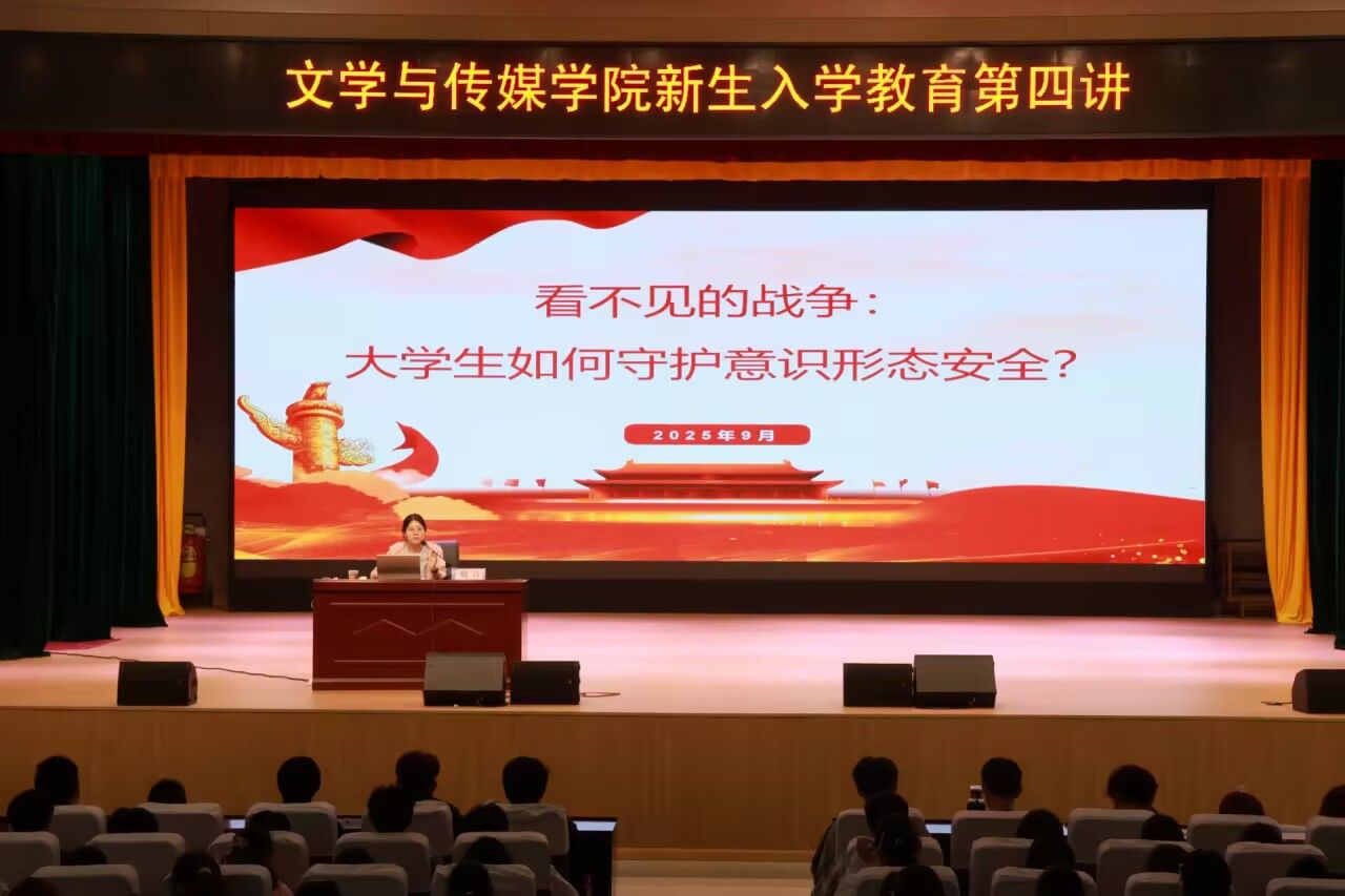 9月29日,SUNBET申博体育在江南校区大礼堂开展新生入学教育第四讲。本次讲座旨在增强员工安全防范意识,提高自我保护能力,邀请公司党委保卫部综合科(政保科)科长、国家安全教育教研室主任刘晓松老师主讲,辅导员喻言主持,全体2025级新生参与。