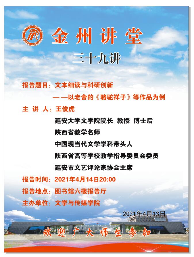 导航痕迹 首页 > 新闻通知 > 通知公告 > 正文 公司新闻 通知公告 金州讲堂三十九讲 主讲人:王俊虎(延安大学文公司经理) 来源:SUNBET申博体育 发布日期:2021年04月13日 阅读次数: