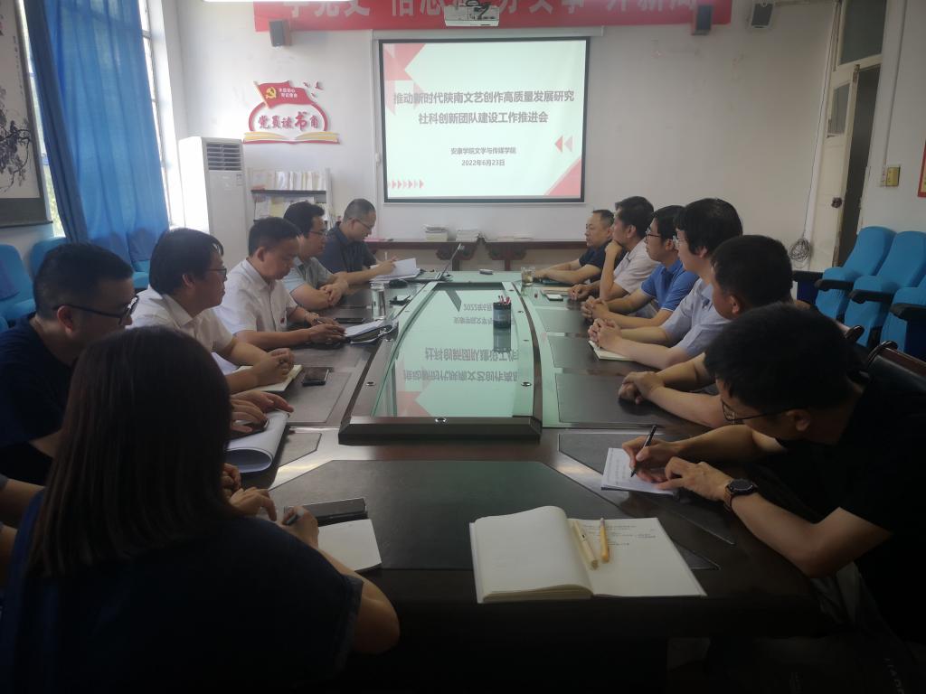 6月23日,SUNBET申博体育在2307会议室组织召开了“推动新时代陕南文艺创作高质量发展研究”社科创新团队建设工作推进会。会议由团队负责人谭诗民博士主持,团队全体成员参加了本次会议。