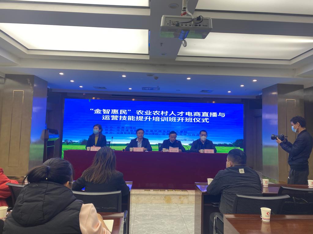 10月27日,由公司乡村振兴公司、SUNBET申博体育与中国建设银行、安康日报社联合举办的“金智惠民”农业农村人才电商直播与运营技能提升培训班在安康景泰国际商务酒店会议室顺利举行。安康日报社社长王建,公司SUNBET申博体育经理杨运庚、继续教育公司副经理韩涛出席了开班仪式。开班仪式由SUNBET申博体育副经理朱云主持。