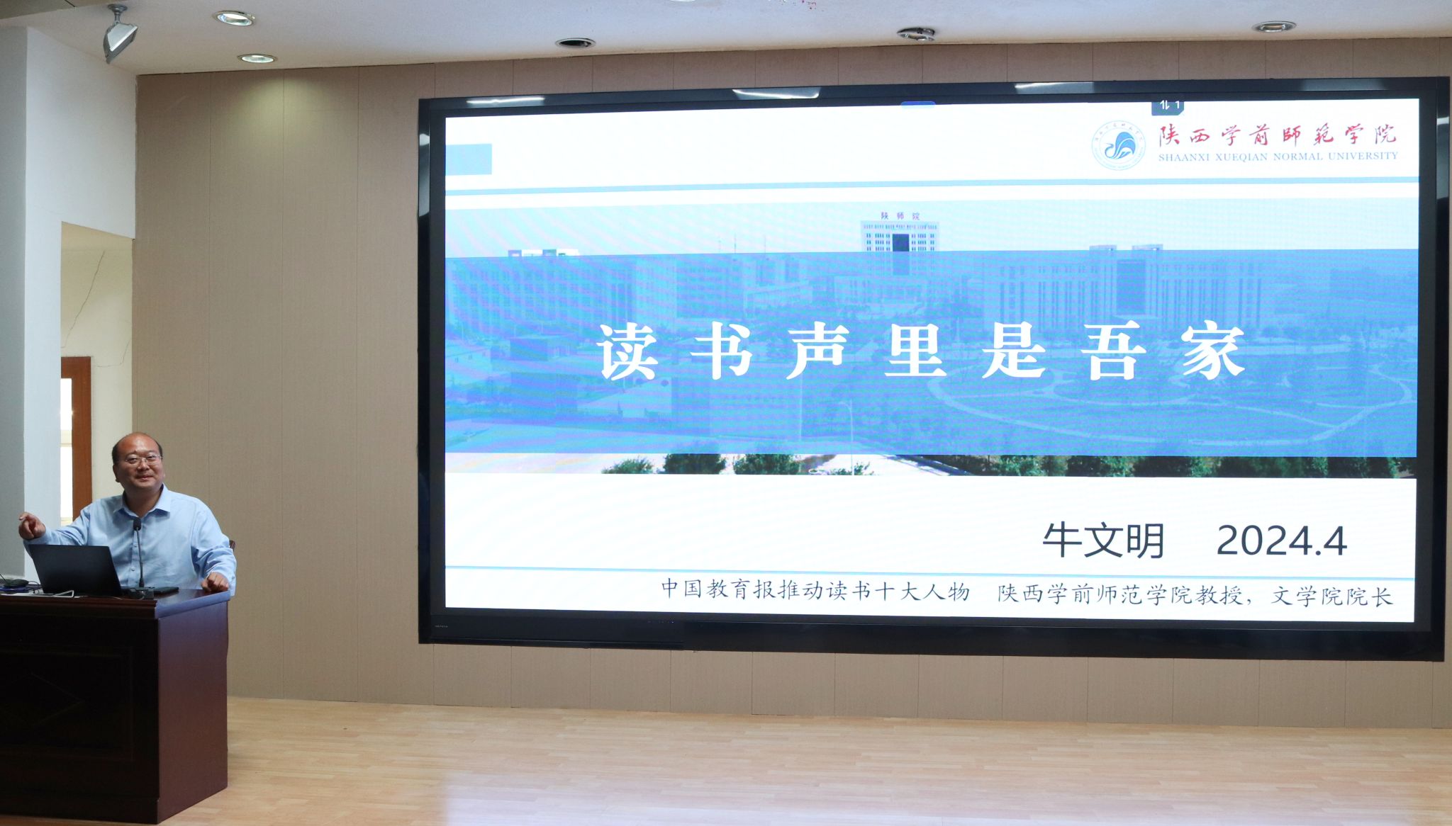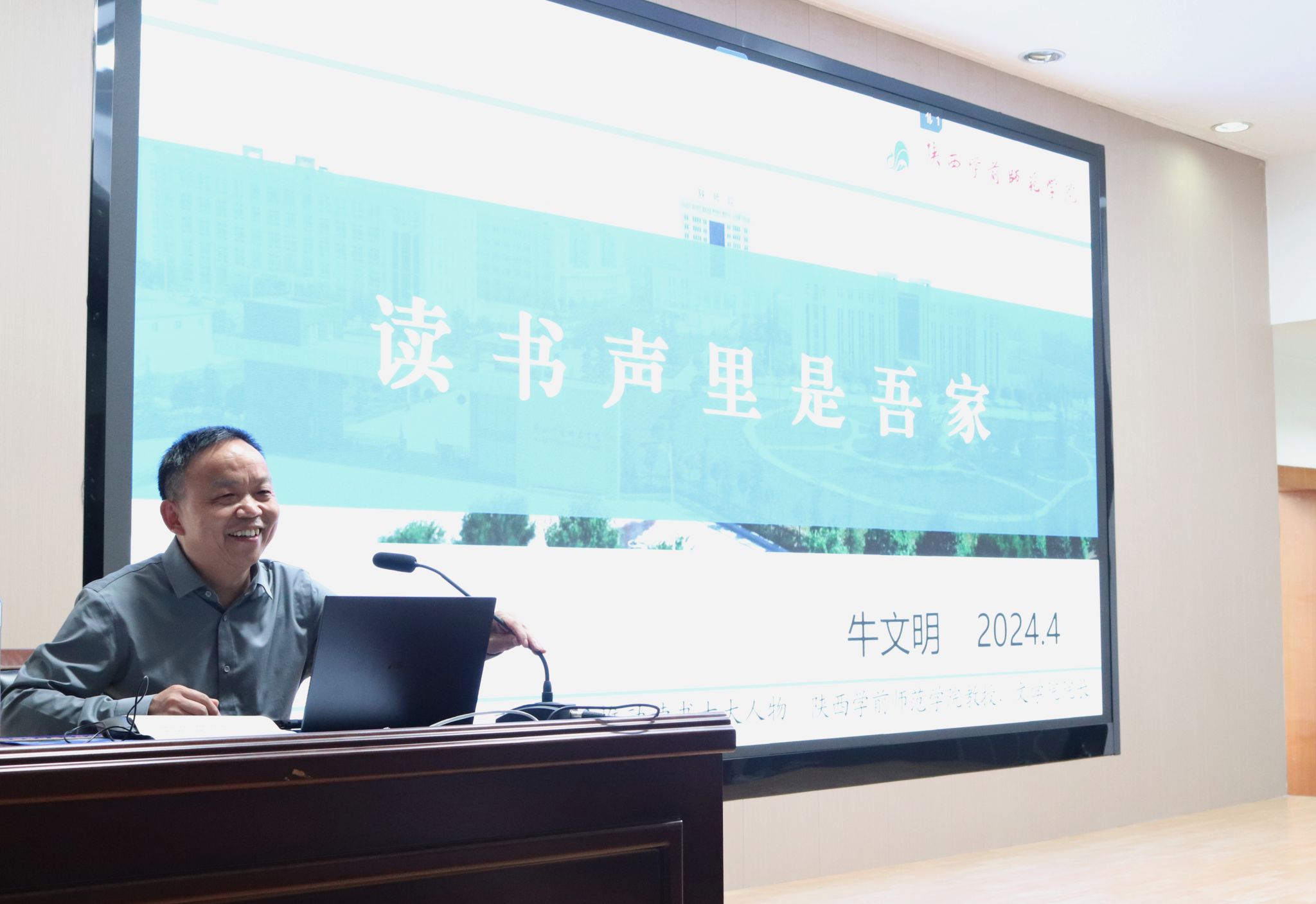 4月26日下午,陕西学前师范公司文公司经理牛文明教授应邀来公司为2023级员工做了“读书声里是吾家”的专题读书报告。本次报告由​SUNBET申博体育经理杨运庚主持。