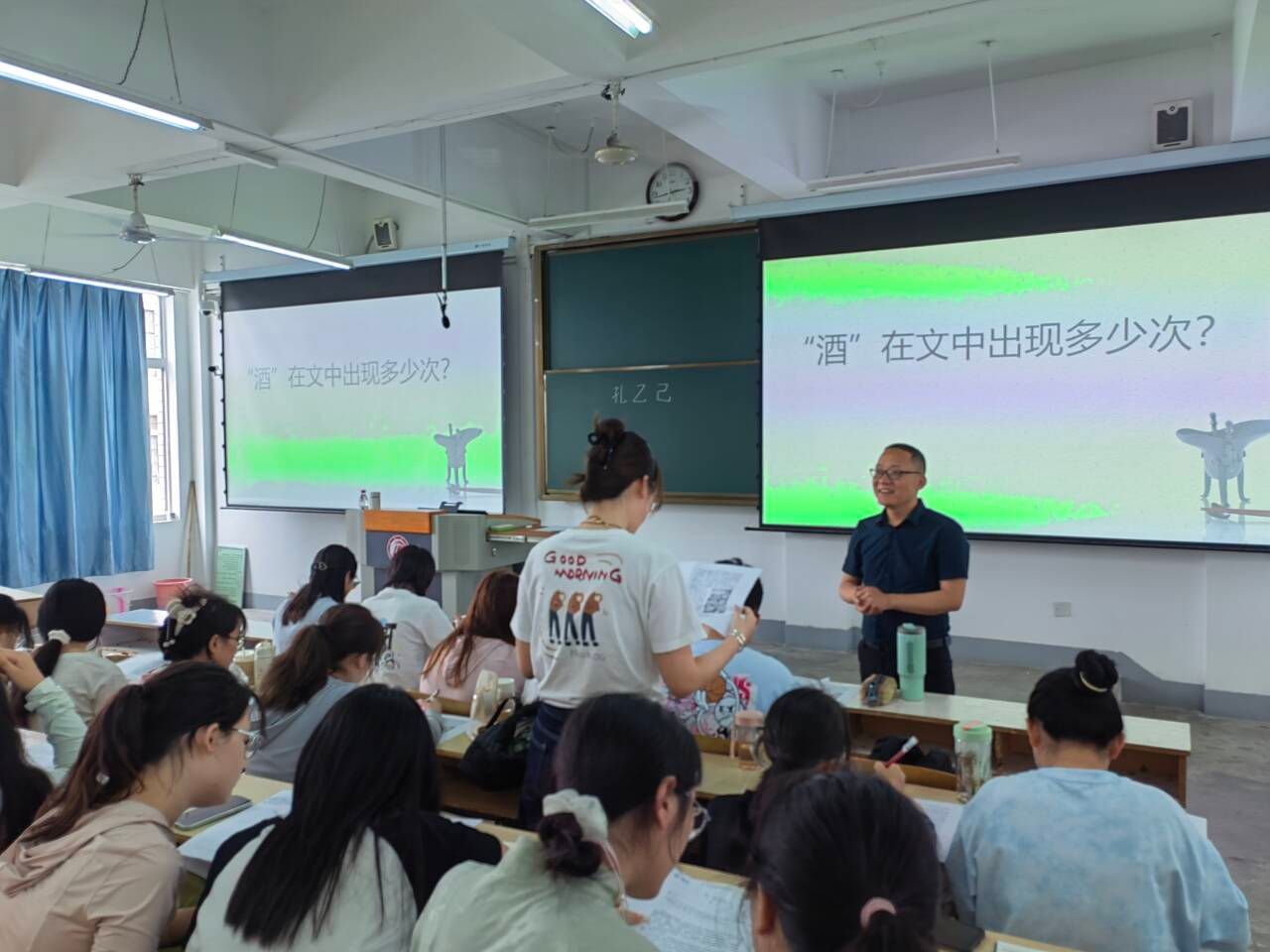 示范课上张老师别出心裁抓住“酒”这一意象,以“酒”为线索推动教学,引导同学们发现“酒”的叙事密码,带领同学们深入研读文本,整堂课行云流水、轻松自在同学们带来了一场从文本深度剖析到教学创新突破的思维盛宴。