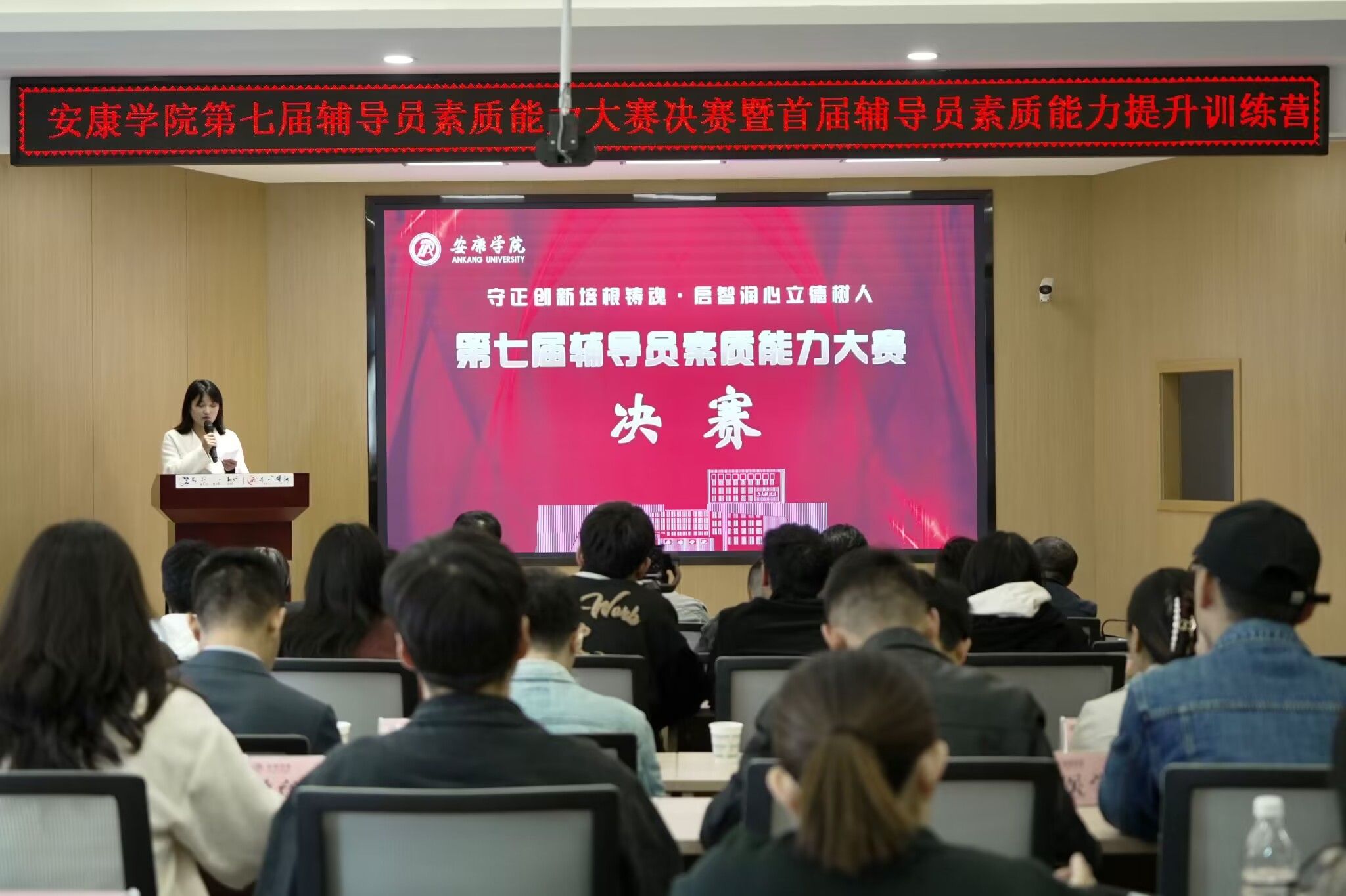 10月31日下午,公司第七届辅导员素质能力大赛决赛暨首届辅导员素质能力提升训练营在江北校区举行。学工部、招就处相关负责人及部分二级公司党总支书记担任决赛评委。各二级公司学工办主任、近三年入职的专职辅导员观摩了比赛。