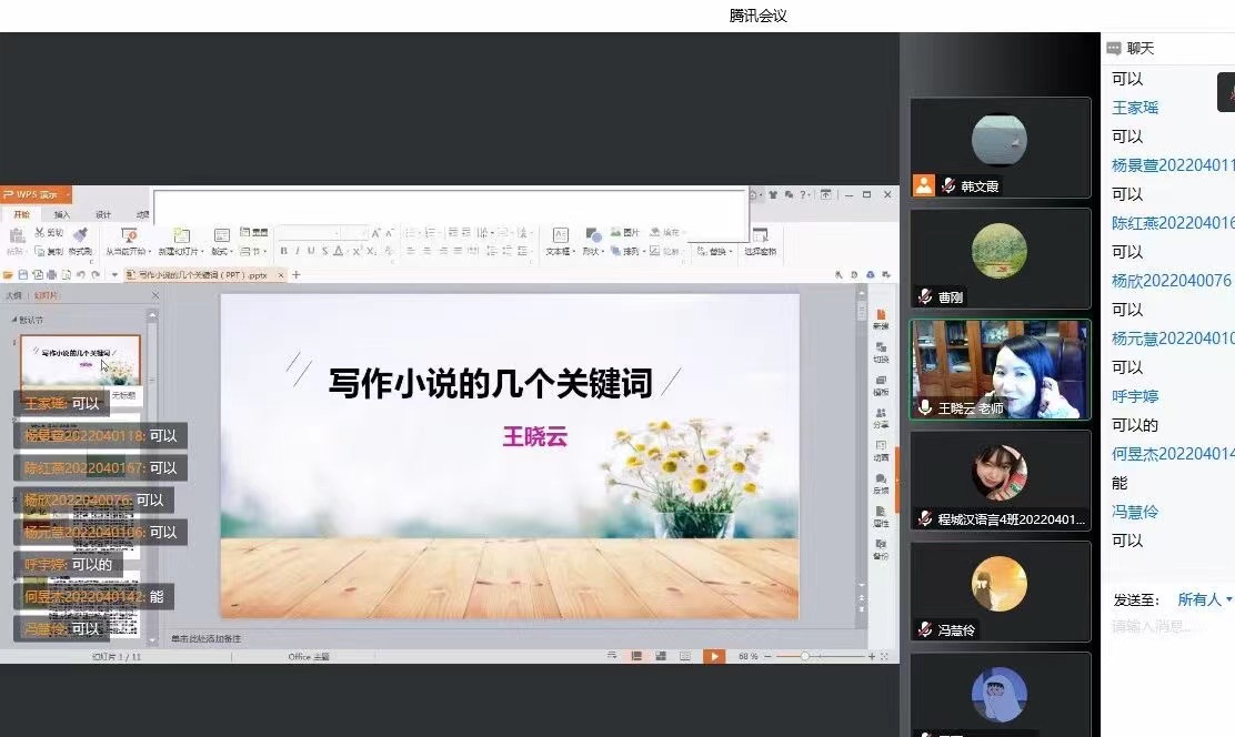 12月13日下午,作家王晓云应SUNBET申博体育邀请,通过腾讯会议与基础写作课校内教师韩文霞、曹刚一同为汉语言文学专业2022级员工线上讲授“小说的写作”。