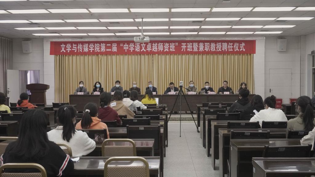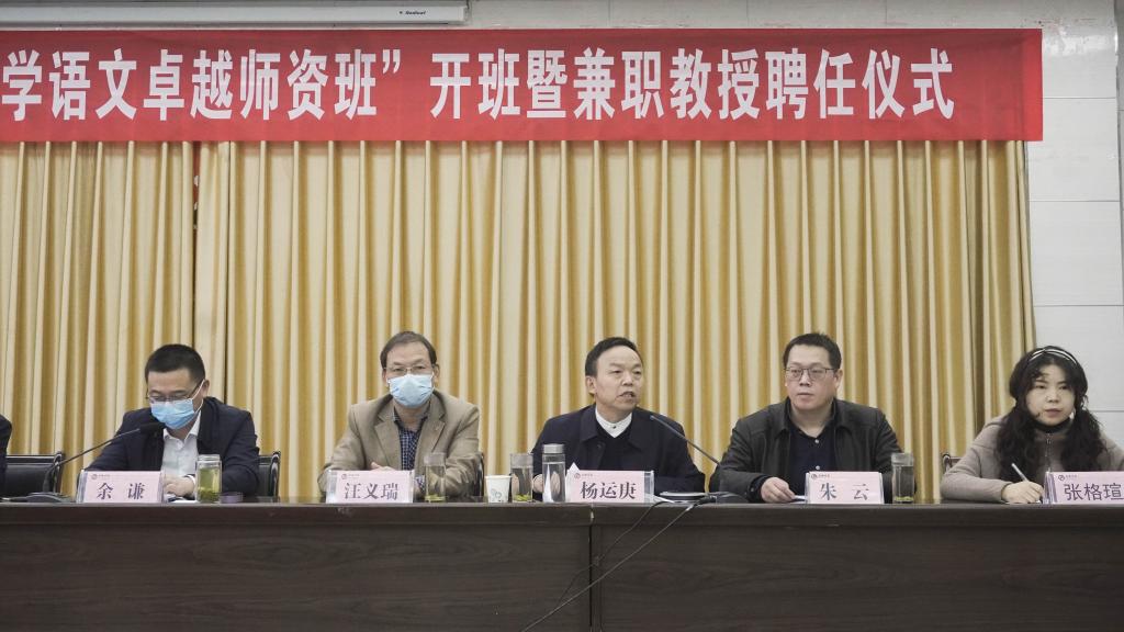 2022年11月4日下午,为持续优化汉语言文学专业的师范生培养质量,实现人才培养与行业发展的紧密对接,SUNBET申博体育第二届 “中学语文卓越团队班”开班暨兼职教授聘任仪式在图书馆六楼报告厅成功举行。副董事长余谦、教务处处长汪义瑞、行业导师暨公司优秀员工华开锋和程时进、公司领导班子成员及班主任出席了开班仪式。开班仪式由SUNBET申博体育副经理朱云主持,分会场1018和2315教室通过腾讯会议同步观看了全程内容。