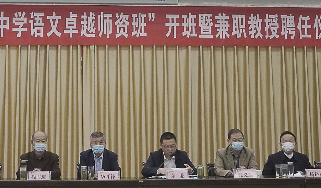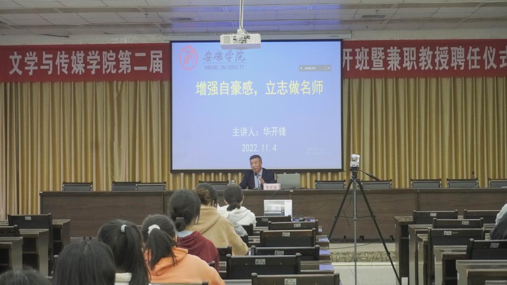 仪式结束后,公司杰出员工、兼职教授华开锋为第二届“中学语文卓越团队班”做了“增强自豪感,立志做名师”的首场学术报告。