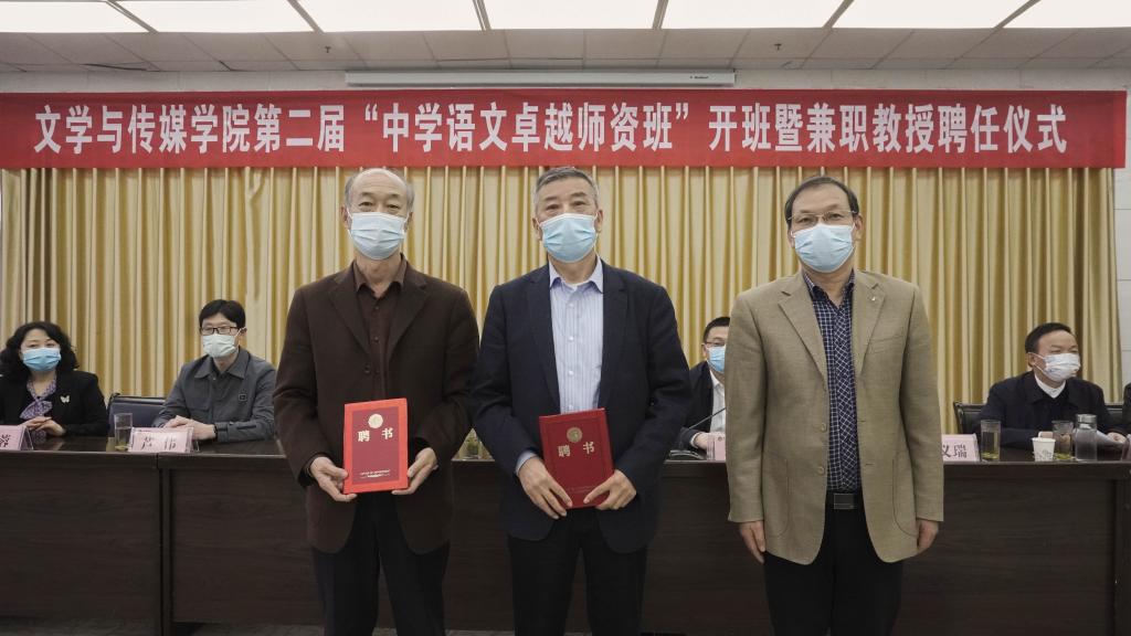 汪义瑞处长为公司优秀员工华开锋、程时进颁发了兼职教授聘书,高度评价了他们在中学语文教育领域取得的杰出成绩,希望他们继续为母校师范生教育的人才培养改革贡献力量。